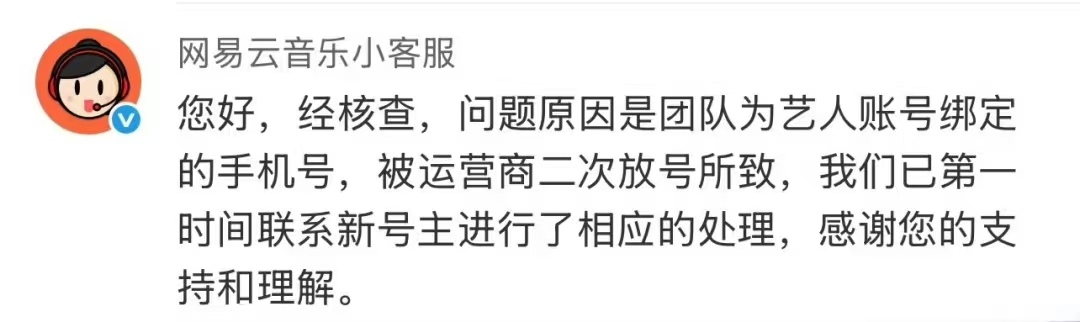 这事很快引发讨论,网易云客服当天解释:账号绑定的手机号因长期停用被运营商回收,过了 90 天 “冷冻期”(停用后需放 3 个月才能再用)便二次放号,新号主注册触发验证码登录,又因李玟团队没申请解绑、平台不随意删号,才出了乌龙。客服称已第一时间联系新号主解绑,新号主也证实 “官方来电说处理好了”。但那些私信已传开,有网友说 “看着就哭了,像闯进了安静的纪念馆”。