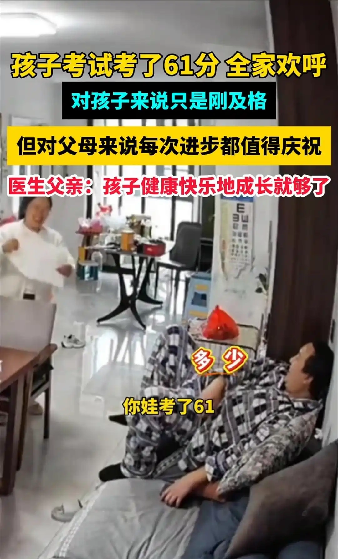 儿科医生一家庆祝儿子考61分火爆全网!反内卷教育观引热议