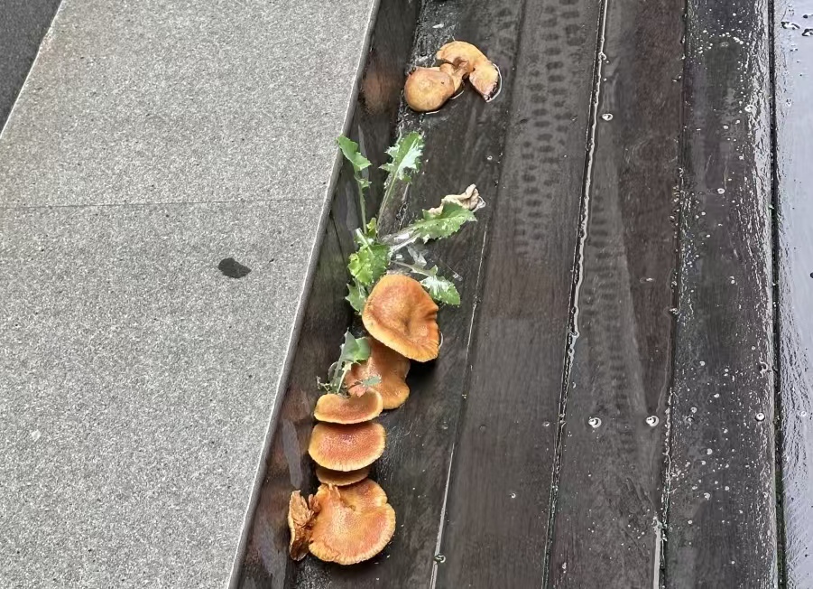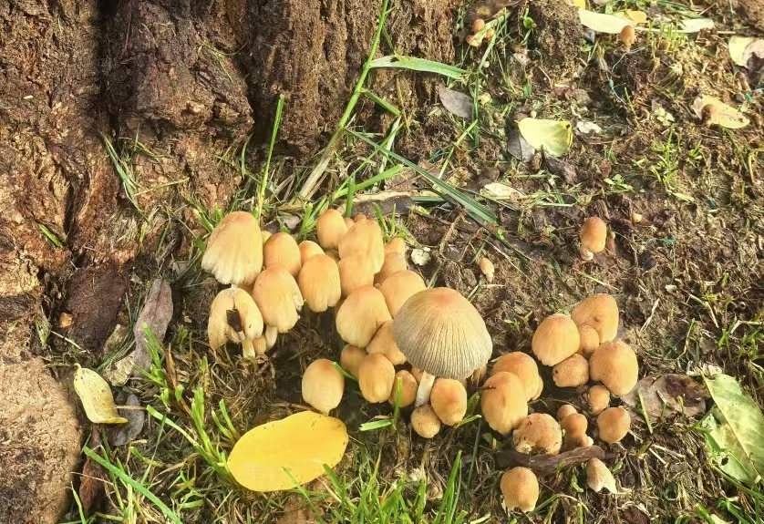 10 月 13 号,西安连下一个多月的雨总算歇了阵。空气里飘着泥土腥气,街头却冒出新鲜事:曲江池公园长椅下、学校草坪枯木上,白的褐的蘑菇一簇簇冒头,最大的比巴掌还大,像被雨水叫醒的小伞,古城成了 “蘑菇小王国”。