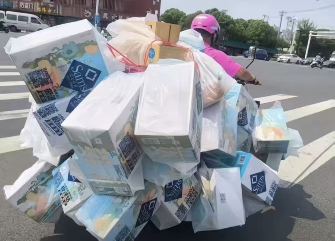 大家都知道,山姆本来就主打 “大包装、囤货装”,吃的用的都是大份。好多人一次买够一家子的量,订单货量比普通超市多不少。可正因为这样,网友更纳闷:这么多大件货,用电动车送真合适吗?