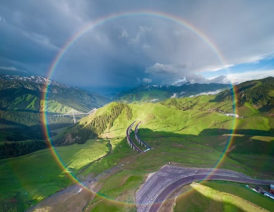 要看到全圆彩虹,还得凑齐 “三个条件”。首先得有 “好高度”,得站在能 “越过” 地面的地方,不然下半圈肯定被挡;其次水滴要 “听话”,空气里的小水滴得大小均匀,不能有的大有的小,不然光会被拆得乱七八糟,彩环就不清晰了;最后太阳得 “站对位置”,太阳高度角得差不多 42 度,太高或太低,折射出来的光都不够亮,彩虹就没那么显眼。