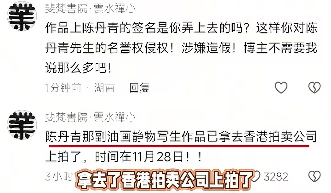 现在高先生还在跟拍卖行协商,嘴上说 “行里规矩是买定离手,看走眼只能认”,却还是盼着有新机构能免费鉴定,证明这画是 “真的”。而洪健翔的视频评论区里,有人调侃:“当年老师一句差评,反倒成了造假的商机”;也有人问:“被冒名的陈丹青,还有被侵权的毕业生,到底谁该维权?”