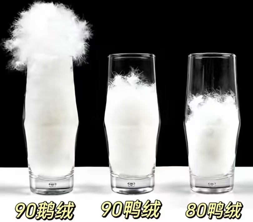其实羽绒服能保暖,核心就是靠里面的绒锁住空气,形成一层保暖层。绒朵越大、越蓬松,保住热量的本事就越强。鹅绒的绒朵天生就比鸭绒大,还更饱满,像咱们吃的棉花糖似的,能裹住更多空气。一般来说,鹅绒的蓬松度能到 600 到 700,好点的甚至能超过 800;可鸭绒的绒朵小一圈,蓬松度大多在 450 到 600 之间,里面还会混点细小的羽毛梗。