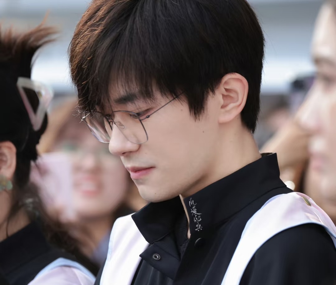 他穿的学士服边角都有点磨毛了,是从箱子里翻出来的旧衣服,没换学校准备的新款式。排队上台拨穗的时候,当年教他表演的老师手顿了一下,轻声说 “还记得你演父亲时眼里的光”,他弯腰鞠躬,没吭声,眼眶悄悄红了。拍大合影的时候,他自己站到最后一排,帽檐压得低了点,直到同学喊 “千玺看镜头”,才抬起头浅浅笑了笑。有个学妹在远处怯生生地想自拍,他瞥见了,主动凑过去等人家拍完,再默默退回去,动作自然得就像当年在教室里帮同学递笔记本。