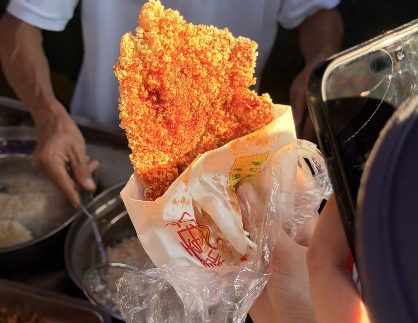 这位从景德镇来的 “鸡排老板”,带着九十万粉丝的期待第一次来南京。前一天音乐节上,他提前两小时就支起了摊子,腌好的鸡胸肉下了锅,炸得金黄酥脆。一千份六块钱的鸡排,再配上他那句 “美味马上来” 的吆喝,在音乐声里成了最热闹的小角落。粉丝拿着热乎的鸡排问他南京哪儿好玩,他黝黑的脸上有点不好意思 —— 那时候他刚连忙五个小时,连秦淮河的夜景都没顾上瞅一眼。