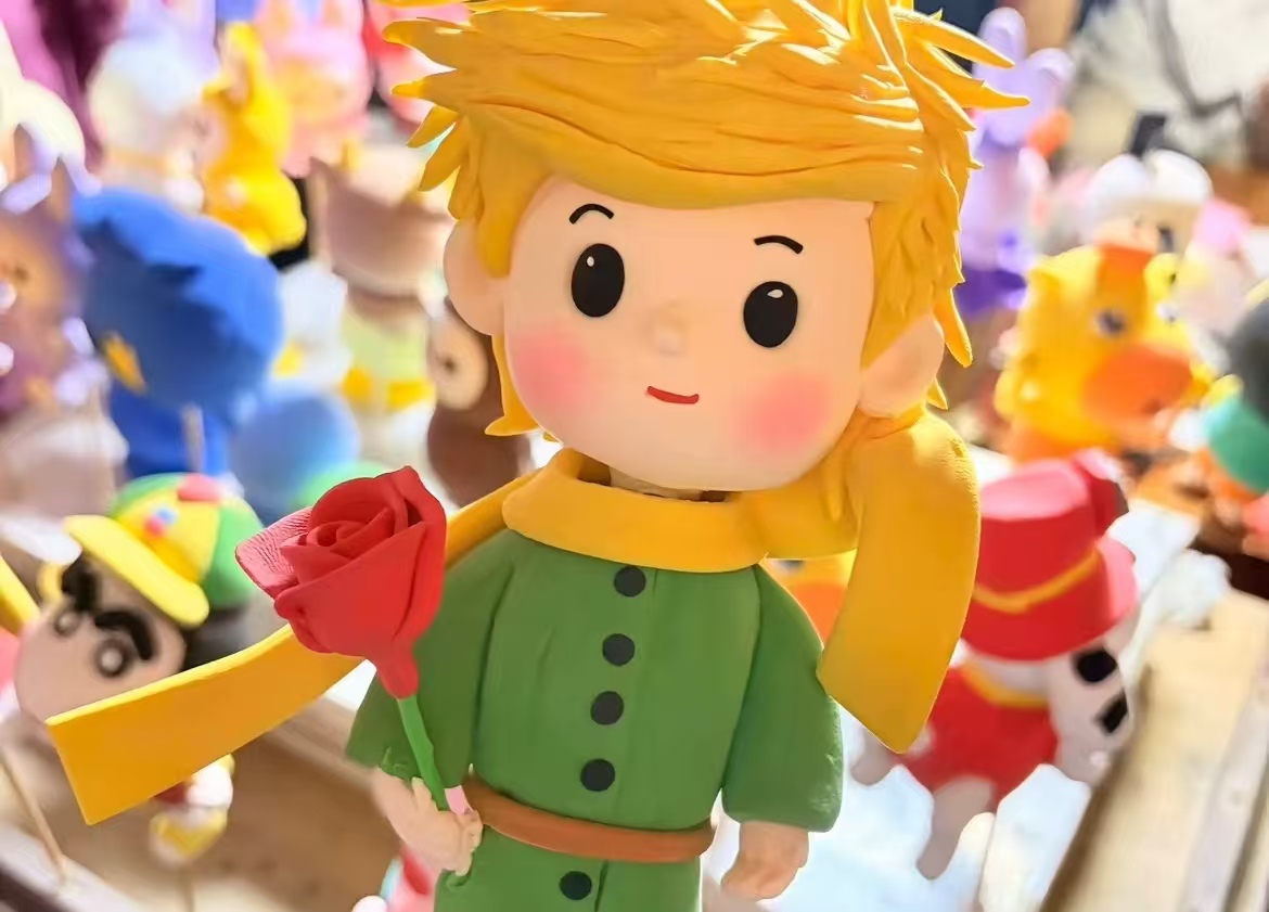 不过别看摊主一脸 “不想营业”,一拿起面团就变了个人。前面有个姑娘递给他一张小猪佩奇的图,他扫了两眼,拿起粉色面团揉了揉,手指头飞快地捏、揉、按,没几分钟,一个圆滚滚的小猪佩奇就出来了 —— 圆耳朵、红裙子,连尾巴的卷曲弧度都跟图上一模一样。姑娘接过就喊:“太像了!比我手机里的图还可爱!” 周围人都凑过来看,你一言我一语地夸,摊主却没咋说话,接过后边人的图就继续忙,奥特曼的铠甲、小兔子的长耳朵,捏得都跟活的似的。