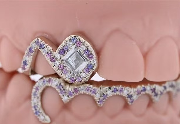对比伯来说,这款钻石牙套可不是一时兴起的单品,他早就深陷这类定制装饰牙套的魅力,收藏了不少经典款式。2019 年推出的粉钻款就圈粉无数,淡粉色的钻石打破了传统钻石的冷硬感,多了几分温柔甜美,不管是舞台表演还是日常出街,佩戴上都格外吸睛;而婚礼上的淡紫钻款更是意义非凡,淡紫色钻石自带浪漫滤镜,为他的婚礼增添了不少璀璨氛围,也成为了那段幸福时光的专属纪念。