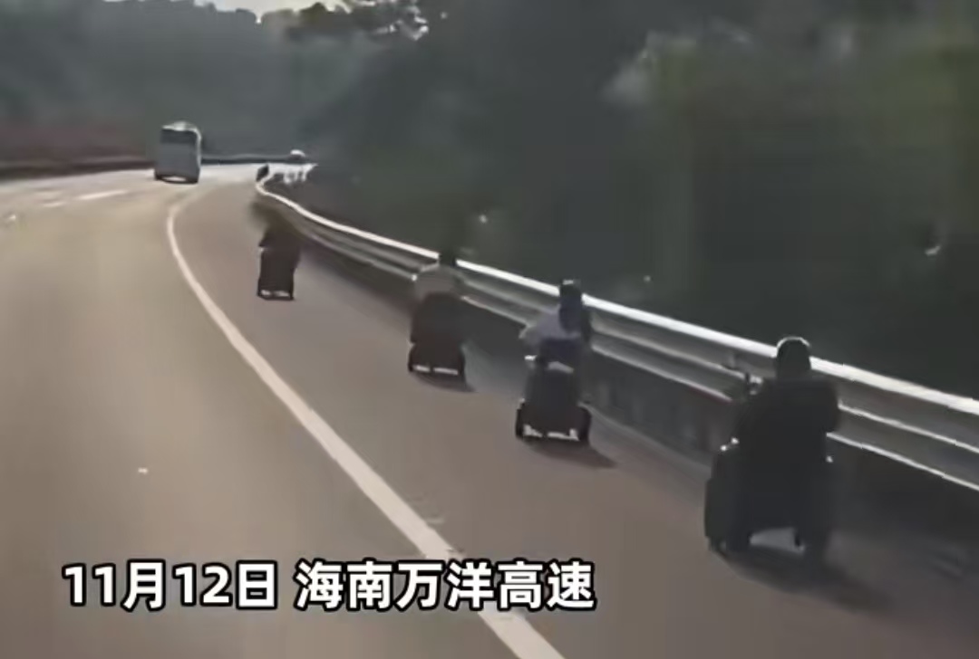 11 月 12 号上午,海南万洋高速儋州段出了件让人心都提到嗓子眼的事 ——6 位老人挤在一辆电动三轮代步车上,居然开上了高速的应急车道!要知道高速上的汽车都是 “飞” 着跑的,这慢悠悠的三轮车在旁边,看着就吓得人手心冒汗,稍不注意就可能出大事。好在儋州交警反应快,赶紧出手,最后把老人们安全送下了高速,没让危险成真。