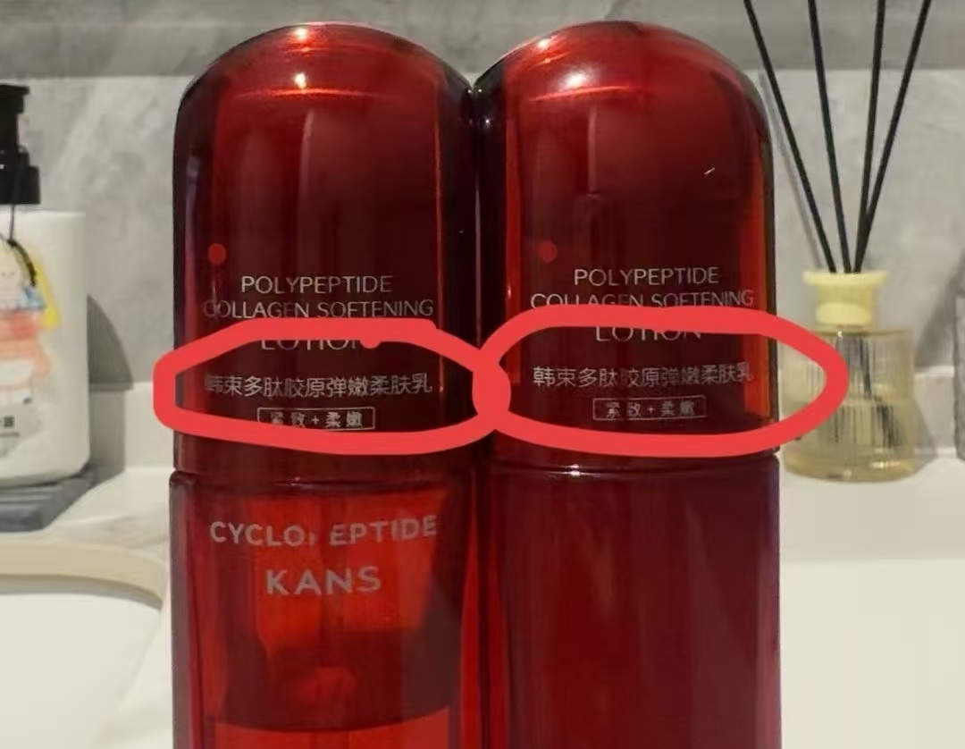 更让人糟心的是使用体验,正品本该清爽好吸收,这款假货上脸却黏糊糊的 “糊脸”,还带来一阵刺痛感。消费者越用越不对劲,对比专柜正品后发现,质地、香味都差得远,这才怀疑自己买到了假货。为了求证,她自掏腰包找了第三方机构检测,结果报告明确写着 “伪造产品”,还列出了包装字体间距不对、瓶盖浮雕工艺不符、瓶体结构有差异等多个问题。