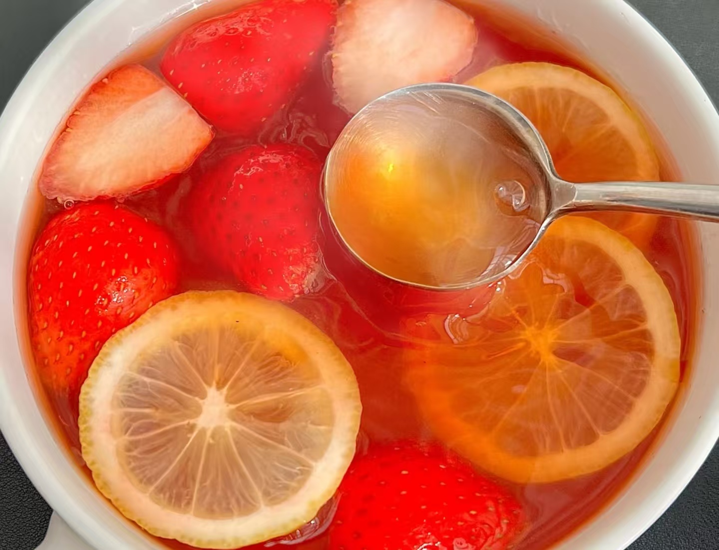 刚煮好的草莓热红茶,杯子里冒着袅袅热气,杯壁很快凝起一层小水珠。双手捧着杯子,掌心被温热的杯壁烫得微微发麻,赶紧换个姿势捧着,暖意顺着掌心一点点蔓延到胳膊,再传到全身,刚才还冻得发僵的手指,这会儿也慢慢舒展开来。凑到嘴边喝一口,温热的茶汤滑过喉咙,先是红茶的醇厚香气在嘴里散开,带着一点点恰到好处的涩感,紧接着草莓的清甜就跟上来了,甜而不齁,酸得爽口,两种味道搭得刚刚好,一点都不冲突。嚼一口泡软的草莓,果肉吸饱了茶汤,酸甜的汁水在嘴里爆开,混着残留的茶香,越嚼越有味道,连带着舌头都觉得暖暖的。