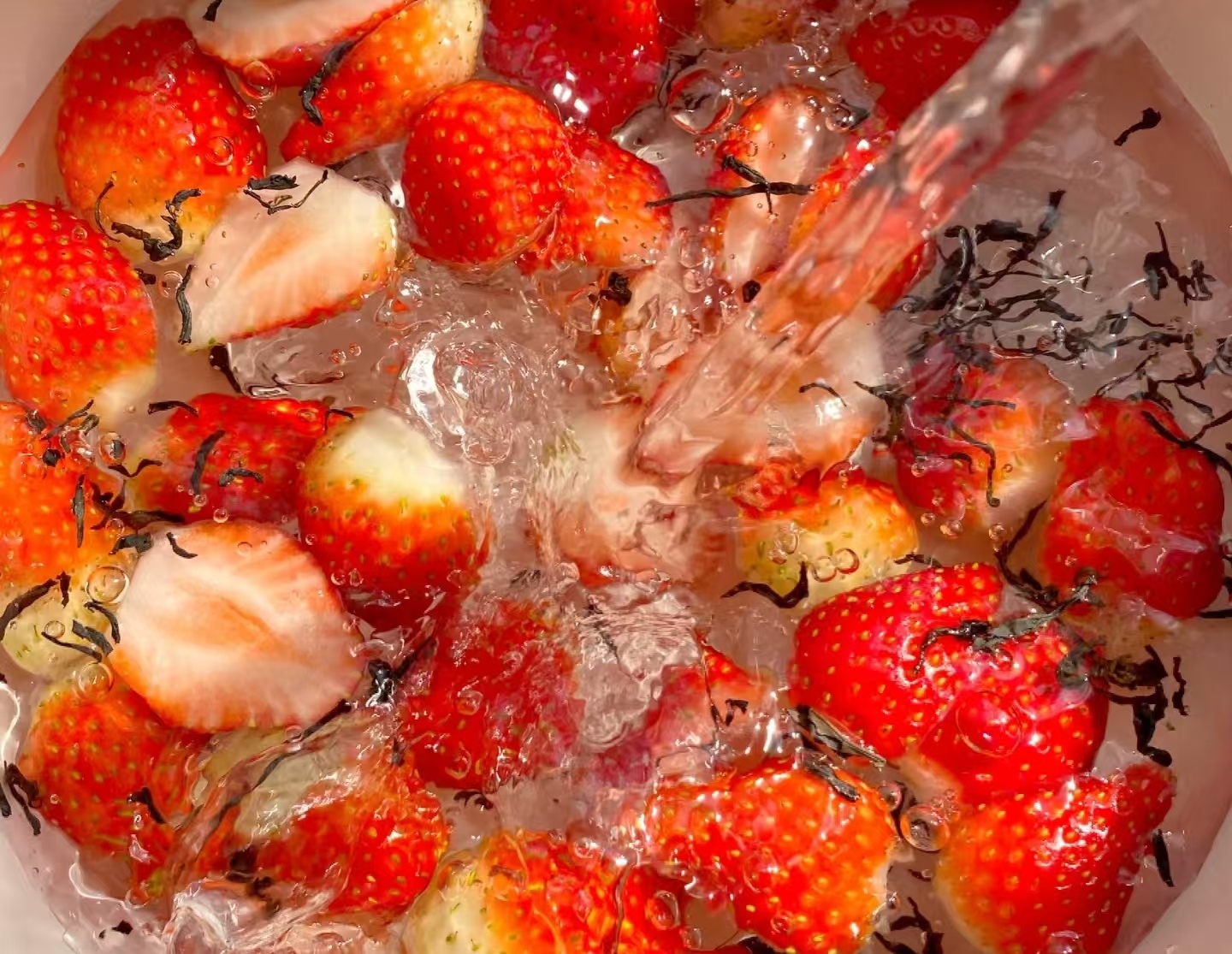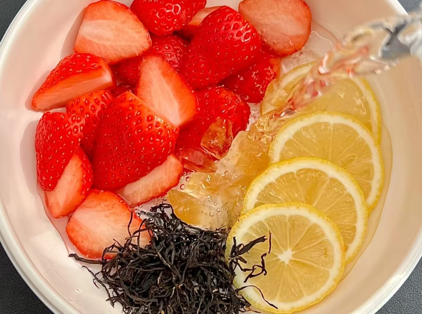 做法一步一步来,新手也能轻松拿捏:第一步先处理草莓,洗干净后去掉绿蒂,对半切开(个头大的切四瓣),这样煮的时候甜味更容易渗出来;第二步煮红茶,小锅里倒上纯净水,大火烧开后放入红茶包,转小火焖 1 分钟,喜欢茶香重点的可以多焖 30 秒,但千万别煮太久,不然茶汤会发苦,影响口感;第三步加草莓和冰糖,把切好的草莓放进茶汤里,再根据口味加入冰糖,继续用小火煮 3-5 分钟,看着草莓在水里咕嘟咕嘟冒泡,鲜红的果肉慢慢变软,汁水渗出来把琥珀色的茶汤染成淡淡的粉,香味飘满整个屋子,光闻着就忍不住咽口水;最后一步装杯,先舀几颗煮得软乎乎的草莓铺在杯底,再把温热的茶汤缓缓倒进去,要是喜欢更细腻的口感,还能把部分草莓和茶汤一起打成泥,喝起来更浓郁。