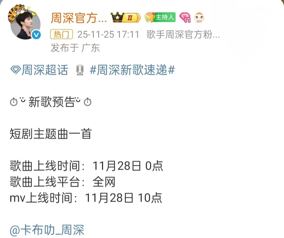 而对周深来说,这次尝试也让他的音乐边界更宽了。从大银幕到小屏短剧,他用歌声证明,好音乐从来不分载体大小。只要情感够真,哪怕是讲邻里家常的小故事,也能通过旋律走到听众心里。
