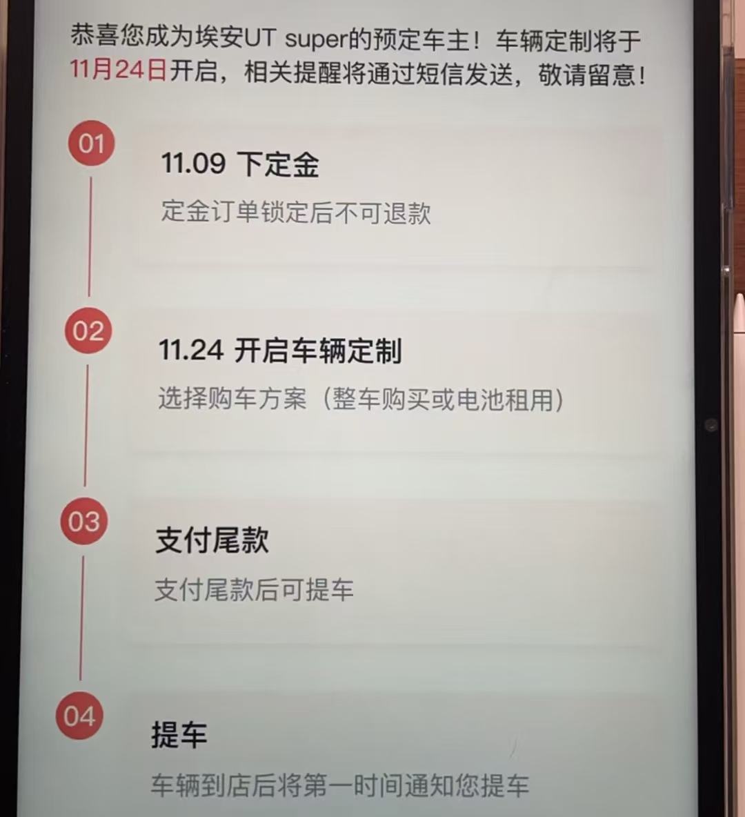 11 月 25 号,京东跟广汽埃安、宁德时代一起搞的首款新车埃安 UT Super,终于开始交车了。本来是三家企业想靠这个新车型打开市场的关键时候,没成想刚交车就炸了锅 —— 不少车主拿到车就要求退订,问题一堆:宣传里明明有的天窗,实车根本没有;说好的租电每月 399 元,背后还藏着每月只能开 3000 公里的限制;连购车发票都只能开上海或广州的,想拿本地补贴都没门。