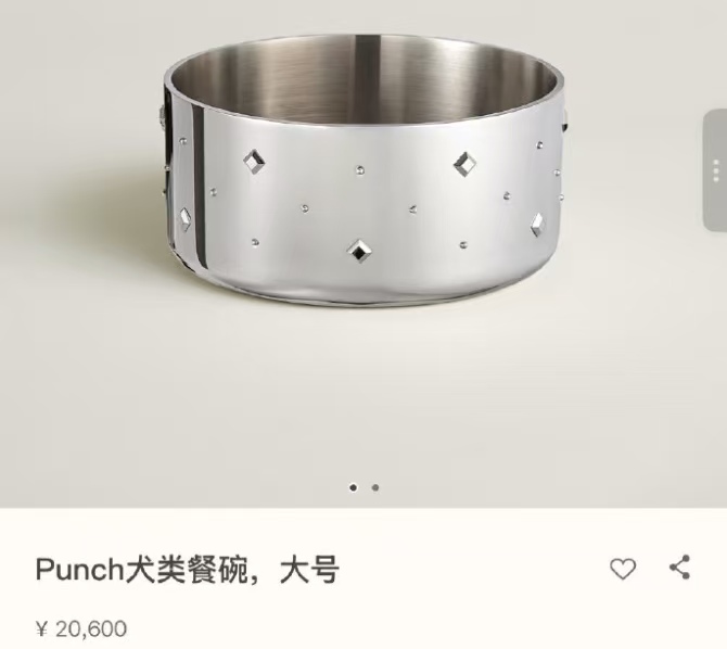 其实爱马仕早就做宠物用品了,之前就出过宠物牵引绳之类的东西,那会儿就用了做马鞍的针法、好皮子,再加上手工磨的金属件,还刻着品牌的标志,走的就是高端路线。这次的不锈钢狗碗,估计也是延续了这路子,别看就是个金属碗,说不定是手工打磨的,碗边的弧度、表面的光亮度都调了无数次,甚至可能偷偷刻了爱马仕的经典图案,硬是把个宠物碗做成了奢侈品。