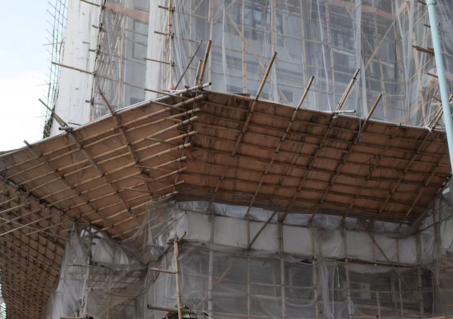 香港的街道,房子挨得近、巷子又窄,要是用金属架,又沉又占地方,运输安装都麻烦;竹架子能顺着楼宇的奇怪形状贴上去,还不会吵到邻居、扬太多灰,特别适配这种密集环境。而且香港又潮又热,金属架晒几天就发烫,工人摸上去容易烫伤,还爱生锈要经常保养;竹子经过特殊处理,既耐用又不烫手,夏天干活也舒服,用完还能回收再用,省了不少仓储和运输费,成本才是金属架的三分之一。
