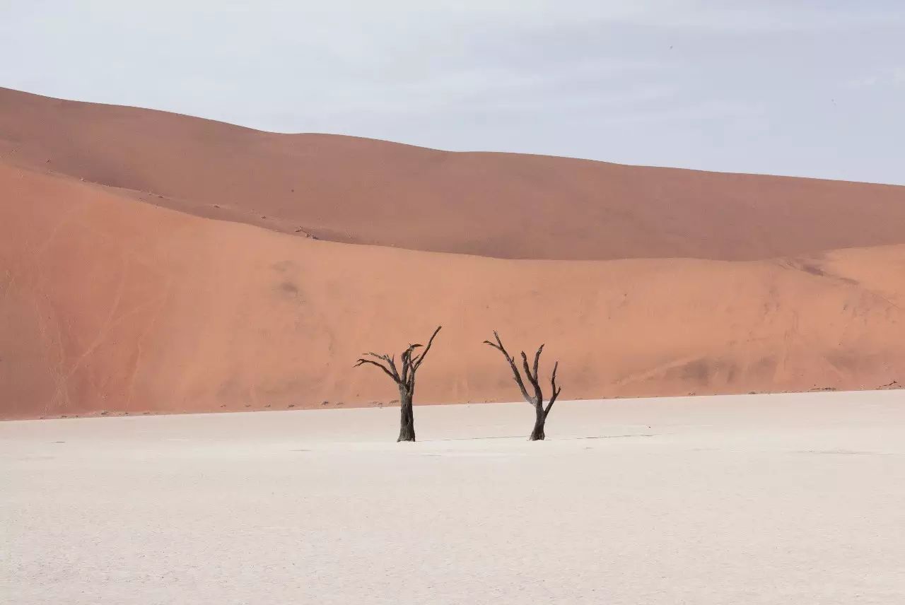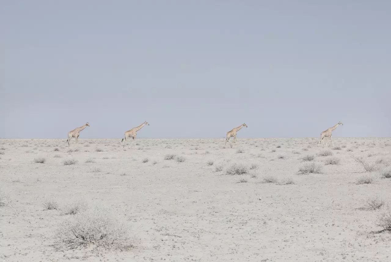纳米比亚是一个以沙漠为名的国家。荒漠无垠,天地茫茫,却有着多变的色彩。想想那广阔的褐色焦土平原,白色的盐田,以及粉红色调的沙丘。长时间开车行驶在荒芜中探寻这些微妙变化的风景需要耐心与敏锐。处处人烟稀少,见到加油站也觉得仿佛不是真实的存在。但是在尽头,却有让人深深着迷与震撼的风景。长颈鹿、斑马、牛成群结队而移,火烈鸟翩然起舞,一只大象在群落中突然跌倒。在这里,动物是大地的主人,他们好奇的看着人类,又转眼忘记,慢慢地享受属于自己的旅途。
