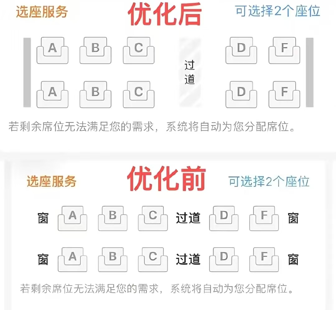 对于这次调整,网友们的看法也分成了两派。支持的人说 “早该改了!以前满心期待选靠窗,结果不对窗更失望,现在换个标识,心里反而有底了”;但反对的人也不少,觉得竖线标识太模糊,“还不如直接写‘靠窗侧’或者‘可能偏移’呢,两道线谁看得懂?” 还有人建议,能不能像航空公司那样,用不同图标标清楚 “正对窗”“靠窗偏移”,这样选座的时候心里更有数。