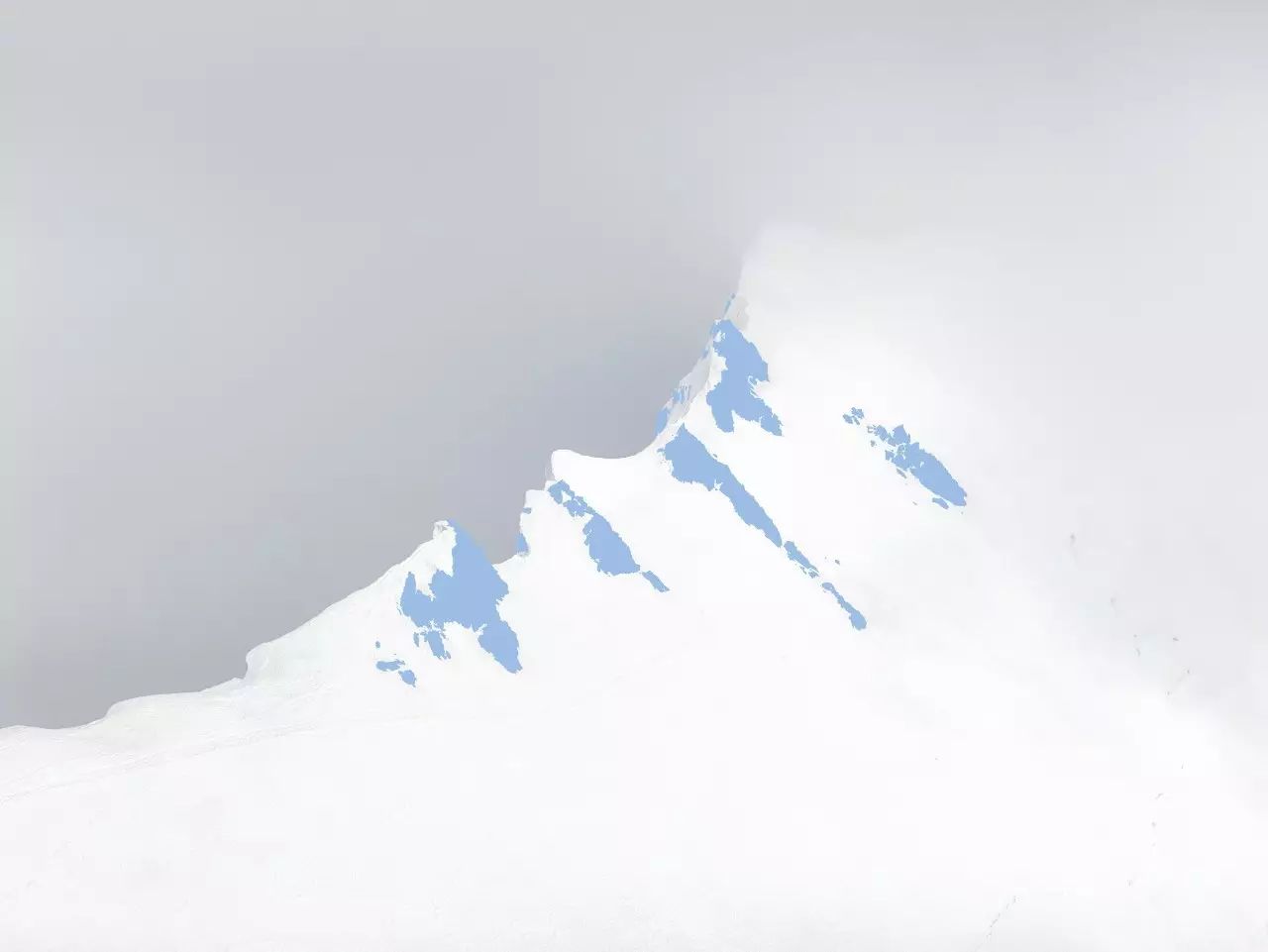 白雪覆盖的悬崖峭壁,蓝天,以及孤独的登山者。他的画面,就是将这三者以一种简洁而又精致的组合再作构成。这当中,来自摄影家的富于主观性与观念性的色彩提纯,作为一种观念与手法起到了重要的作用,同时也更新了我们有关阿尔卑斯山的视觉经验。