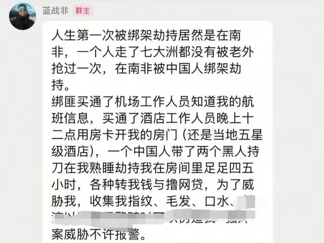 千万网红蓝战非南非遭绑架:半年预谋的惊魂 5 小时