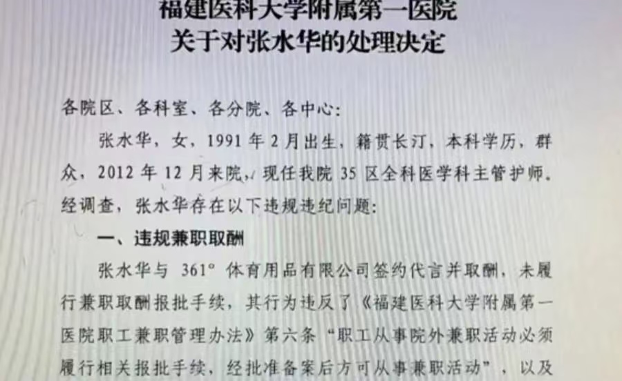 其实单说张水华这两件事,分开看都挺让人佩服的。当护士要照顾病人,本来就累得够呛,她还能挤出时间练跑步,跑成专业选手级别,靠本事拿奖金,这毅力换谁不得说声厉害?可问题就出在她把 “护士” 和 “跑马选手” 这两个身份掺到一起时,没守规矩。医院说,她早就跟一家体育公司签了代言,拿了报酬,可按规定这种兼职得提前跟医院说,让医院评估会不会影响工作,她没走这个流程;更关键的是,有次她要去宜昌跑比赛,居然编了个假理由跟医院要调休,结果她一走,科室没人顶班,只能临时让同事多干活。你想啊,同事本来工作量就不小,突然要多扛一份,换谁心里能舒服?原本挺励志的事儿,就因为这点 “小聪明”,变了味儿。