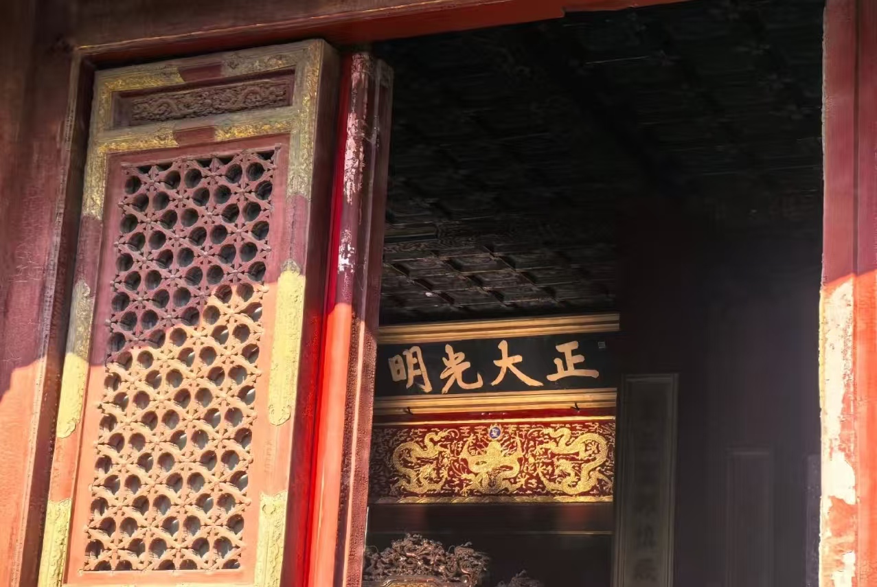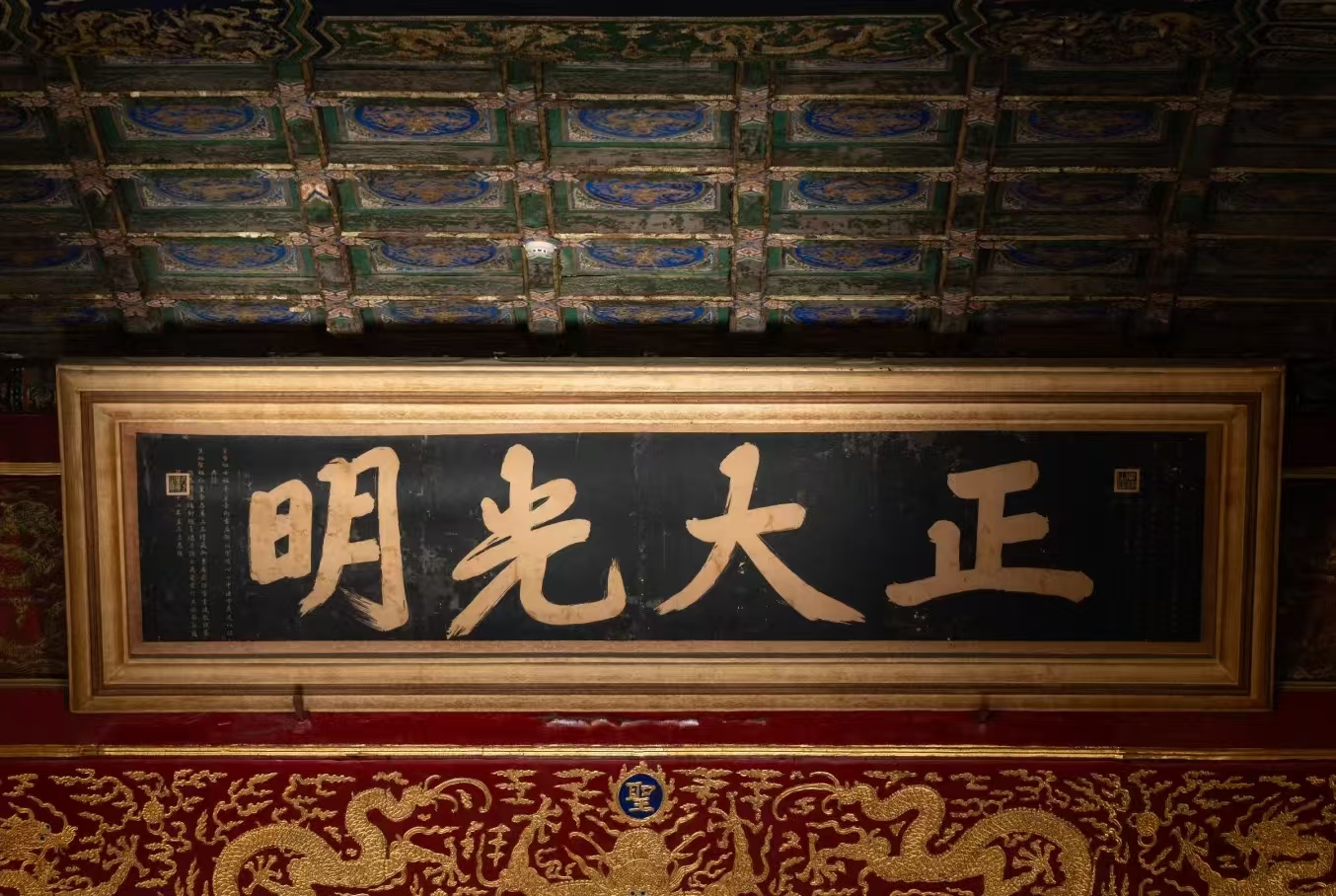 这块“正大光明”匾本身也不简单,背后全是故事。它是清朝顺治皇帝亲笔写的,后来康熙、乾隆都重新复刻过,嘉庆年间失火后又修复过,挂在这儿已经三百年了,见证了好多宫廷里的大事。“正大光明”这四个字的意思就是做人做事要坦荡正派,不仅是皇帝治国的初心,还跟清朝的秘密立储制度有关——皇帝生前会把选好的继承人名字写在诏书上,一份自己拿着,另一份就封在盒子里,藏在这块匾后面。乾隆、嘉庆这些皇帝,都是通过这个方式登上皇位的。现在阳光一照,这块饱经沧桑的牌匾多了几分暖意,那些过去的秘密和故事,好像也跟着光影慢慢浮现在眼前。