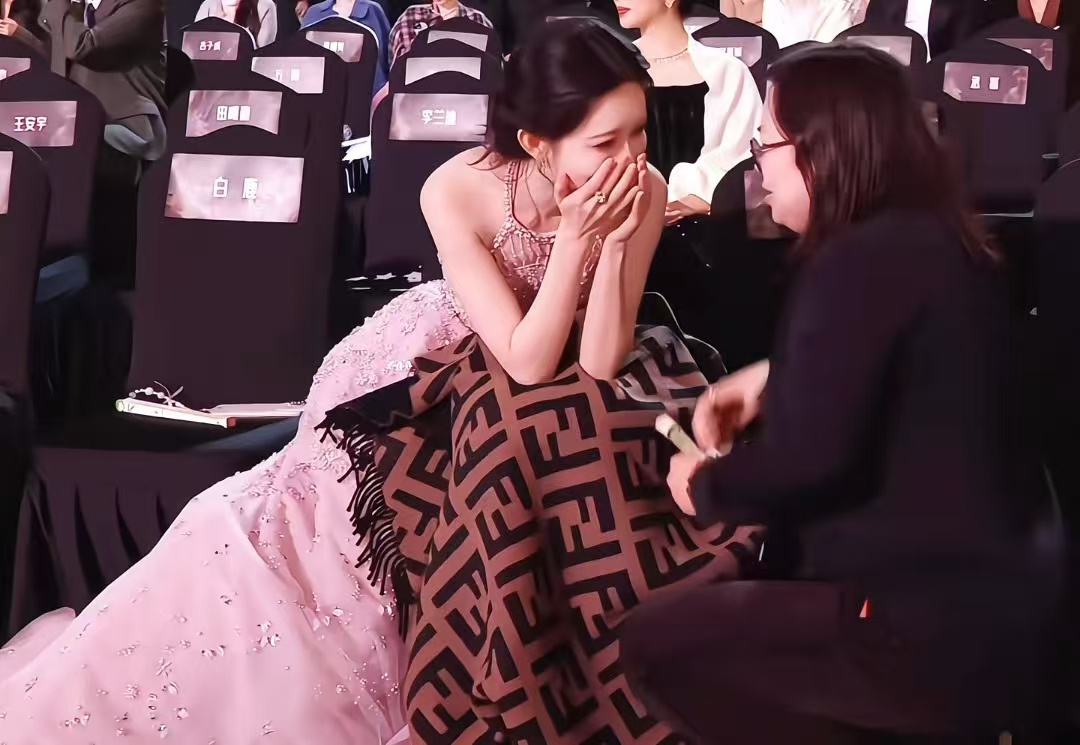 而且镜头之外的孟子义更真实可爱。后台的时候,她一边检查膝盖上的淤青,一边捂着脸跺脚跟工作人员撒娇:“丢死人了”,还吐槽“高跟鞋和台阶就是八字不合”。这种台前从容自嘲、台后委屈撒娇的反差萌,让网友都觉得“内娱不缺完美的人设,缺的就是这种突发状况下的真实和大气”。
