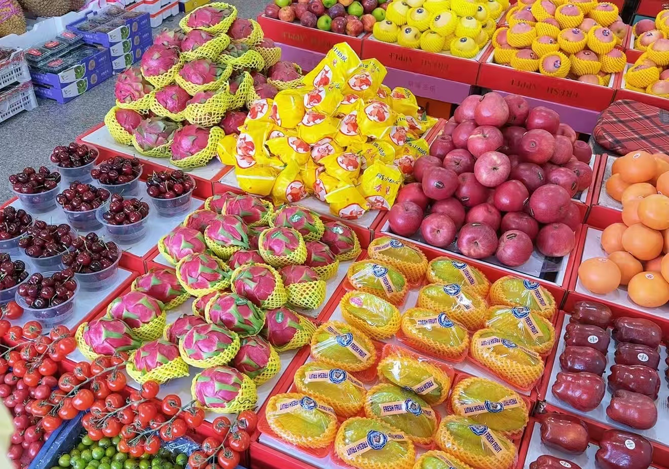 除了品种好,种水果的方式也更讲究了。果农会根据土壤情况精准施肥,比如多补点钾元素,帮水果积累糖分;还会主动摘掉一部分花和果子,让养分都集中供给剩下的果实,这样每个果子都能更甜;套袋、铺反光膜这些操作,能让水果晒到更均匀的太阳,昼夜温差也更大,糖分积累得更多。更关键的是,现在冷链物流发达了,水果可以等完全成熟、甜度最高的时候再摘,不像以前,为了防止运输中坏了,还没熟透就摘下来,自然没那么甜。