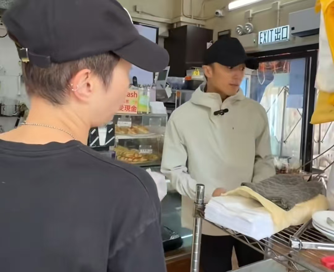 他没摆明星架子,就跟排队的街坊们闲聊,问这家店的菠萝包到底好吃在哪,一脸期待的样子,完全就是个普通的吃货。没等多久,他跟着人群走进冰厅,老式吊扇慢悠悠转着,墙上贴的复古海报、磨得发亮的木桌椅,满是老香港的味道。