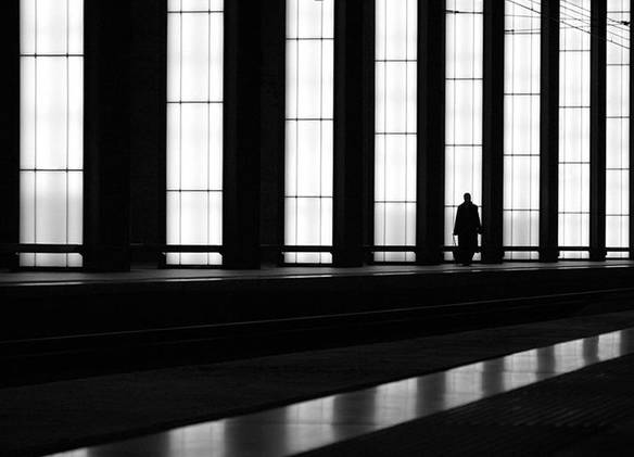 对角线构图,两个人影也给画面增加了不少看点,由人构成的弧形简直巧妙,而且刚好将画面分成两半。