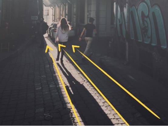 现实生活中也很容易找到一些引导线,例如:马路、小桥流水、整齐排列的灯柱、光线和阴影、楼梯、颜色线条。