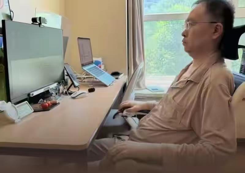 眼控仪的红外线每秒扫描六十次他的眼球,屏幕上的光标就跟着动,这是他处理工作、联系外界的全部依靠。从早上八点到深夜十一二点,除了必要的休息,他的眼睛就没离开过屏幕。这台一分钟能“敲”几十个字的眼控仪,装着他盼着科研突破的急切心情。屏幕这头是他消瘦的身影,那头连着全世界的科学家、科研机构,还有上万个渐冻症家庭——就说2025年11月一个月,他就带着团队开了十四场国际科研会,和以色列、西班牙、美国的专家一起讨论关键问题;靠眼控仪看科研报告、批项目经费,管着三十多个病友群,及时回应上千个患者的求助和疑问;过去二十个月,他拿出五千多万元资助科研,让上百个快撑不下去的实验室重新动了起来。那些普通人想都不敢想的辛苦,在他一句“还活着,就能继续全天工作”的简单回应里,变成了一天又一天的坚持。