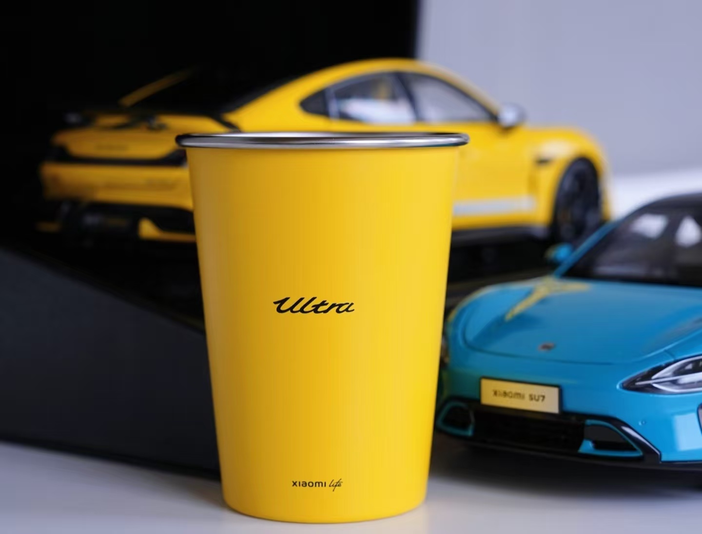 可能有人会觉得“一个杯子至于吗?”但了解小米SU7 Ultra的车漆工艺就知道,这事没那么简单。这款车的车漆本身就特别讲究:珍珠白用纳米级材料去掉黄调,呈现出冷冽的蓝白光;鹦鹉绿要喷7层,光线一照就有流转的效果;紫水晶车漆更是调了18个月才做出深邃的质感。要把这种工业级的质感浓缩到一个小杯子上,难度可想而知。团队不光要让杯子颜色和车身完全对齐,还得考虑手感、保温效果,甚至能不能放进车载杯架,这些都是16次会议里反复聊的重点。