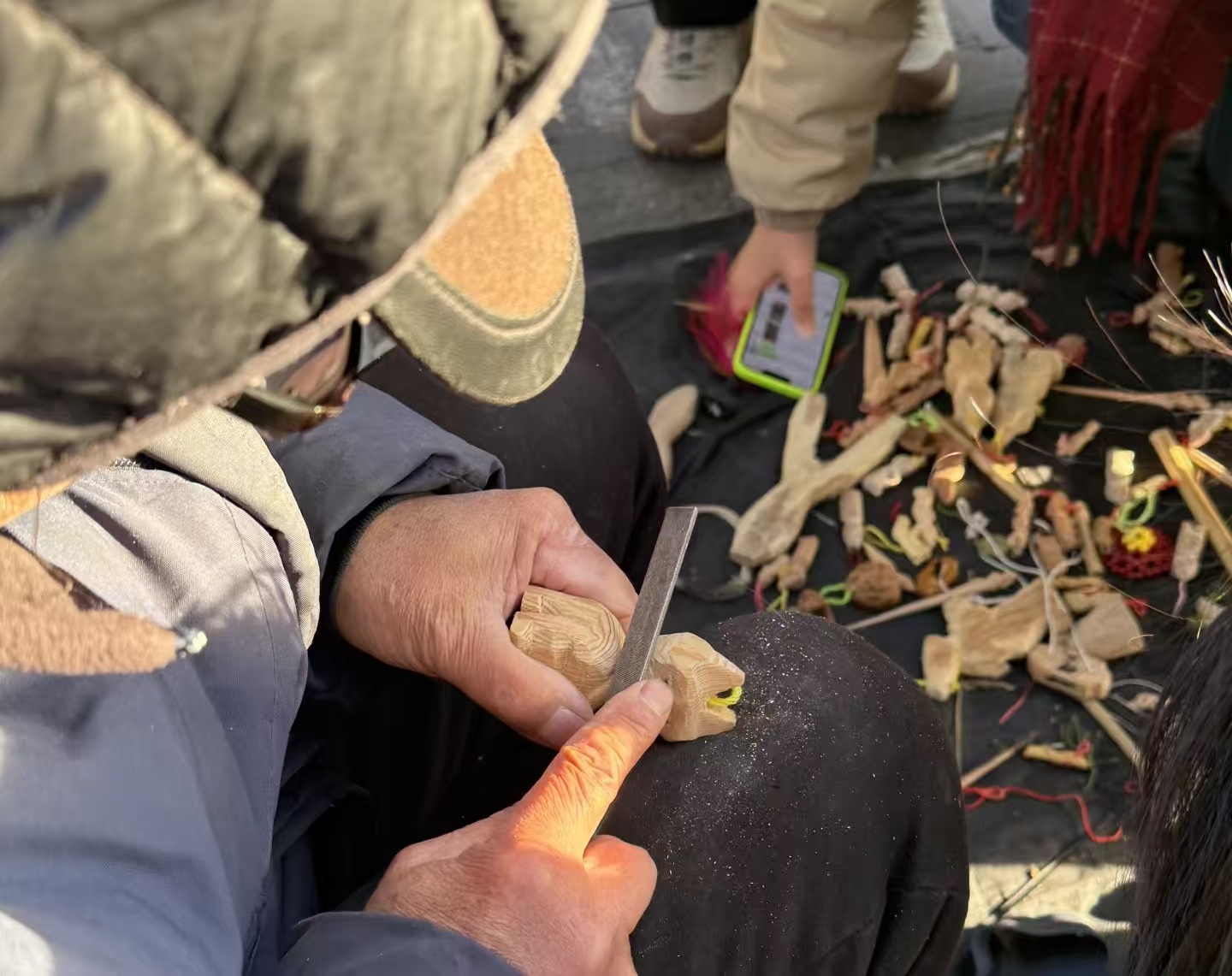 有人买完木雕,还会特意让胡大爷在上面写上他的名字,歪歪扭扭的“胡茂应”三个字,成了最特别的印记。大家说,买的不只是一件小摆件,更是和大爷聊天的快乐、见证手作诞生的体验,还有拥有一件“独一无二”作品的满足感。
