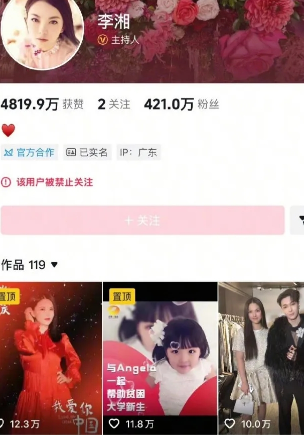 王诗龄账号状态正常,但其某平台评论区已被关闭。数据显示,李湘在多个平台累计粉丝数量接近三千万,其中某社交平台粉丝约2456万,短视频平台约421万,另一内容平台约49万。