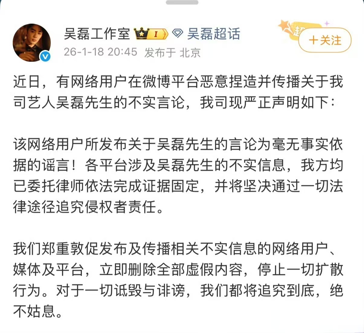 无据造谣碰瓷吴磊?工作室火速维权,闹剧终露原形