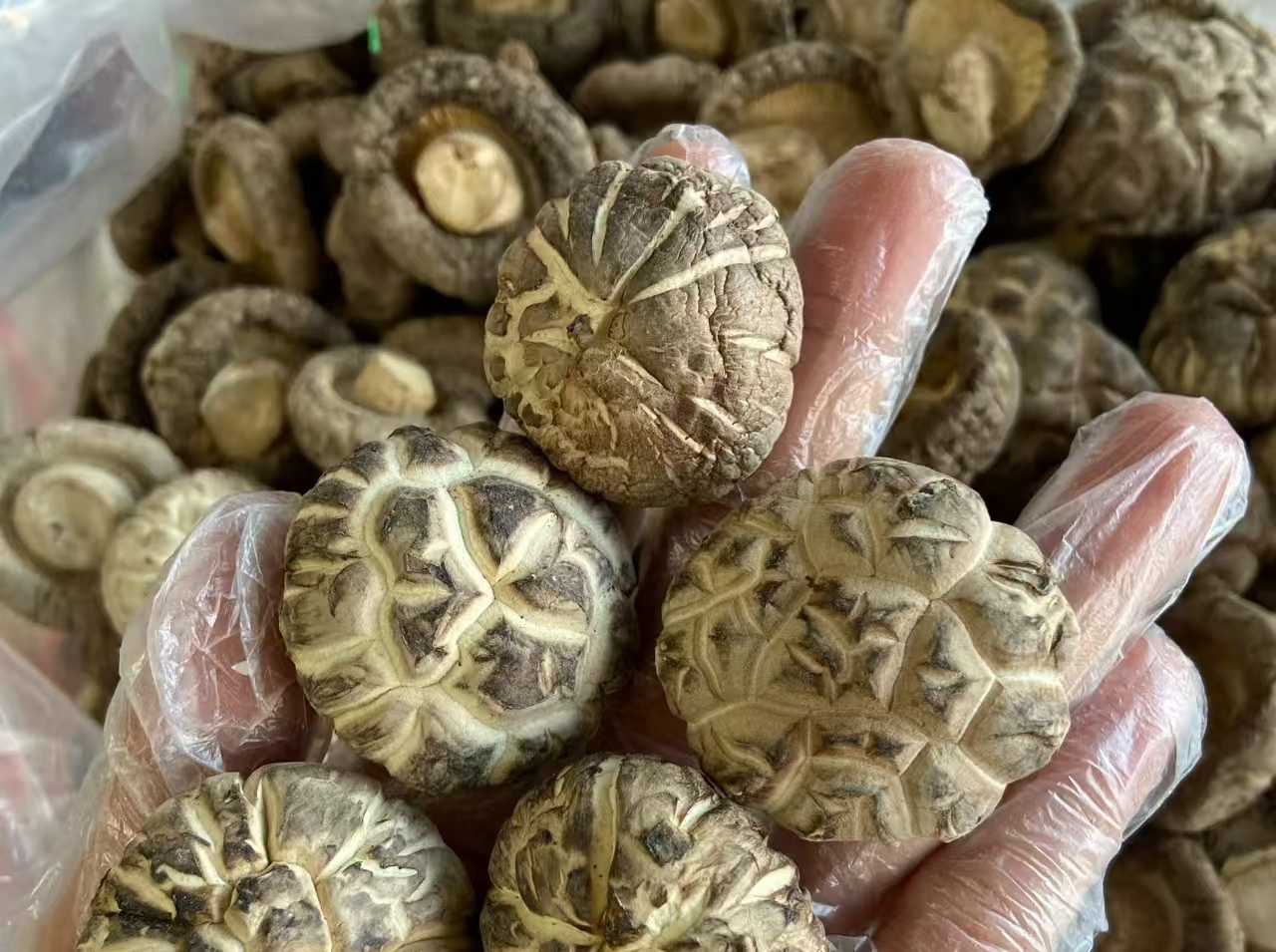 和普通香菇比起来,花菇的生长节奏慢了不少,却也正因这份“慢”,才能充分积累养分,把大自然的精华都锁在肥厚的菌肉里。它菌盖上的花纹不是人工雕琢的,而是生长过程中受温湿度变化影响自然形成的,纹路越清晰、形状越规整,花菇的品质就越好。慢生长让花菇的菌肉格外厚实紧实,吃起来不柴不软,还带着淡淡的清甜,口感远超普通香菇。