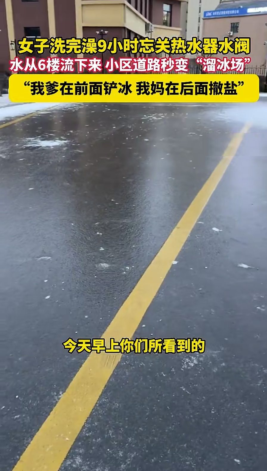 女子给全小区道歉,洗澡忘关热水器水阀,小区道路秒变“溜冰场”