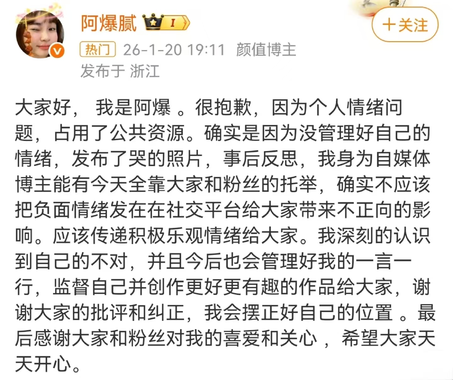 如今阿爆的道歉暂时平息了舆论,但流失的信任很难重建。这场闹剧也给所有内容创作者提了个醒:流量能换来财富,却买不来真正的共情;人设能靠包装打造,却装不出长久的真诚。唯有尊重公众感受、守住表达边界、传递正向价值,才能在流量浪潮里走得稳、走得远。