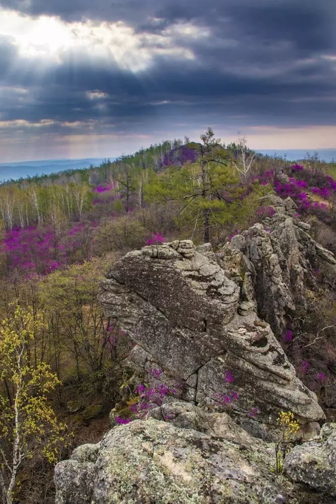 春天的兴安岭,满山红杜鹃,山岭沟壑,处处生机。夏日岭上行,林莽又飘香,青翠欲滴的大森林是避暑度假和领略极夜美景的理想胜地。秋日兴安,层林尽染,极目远眺,天高云淡。“五花山”的美景伴着丰收的喜悦,收获着满山遍野串如珍珠的越桔(北国红豆)、都柿、榛子、稠李子、山丁子以和各种名贵的中草药材。冬到兴安更有诗意,万倾林海一片银妆,四季常青的美人松映衬着皎洁晶莹的冰雪世界,让你顿感大自然的伟大。
