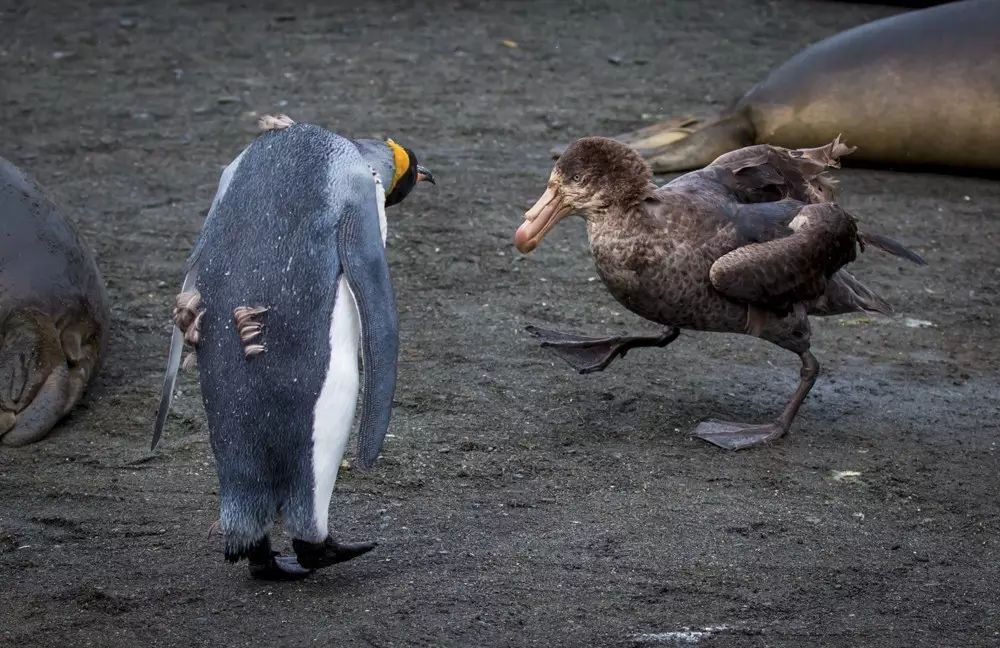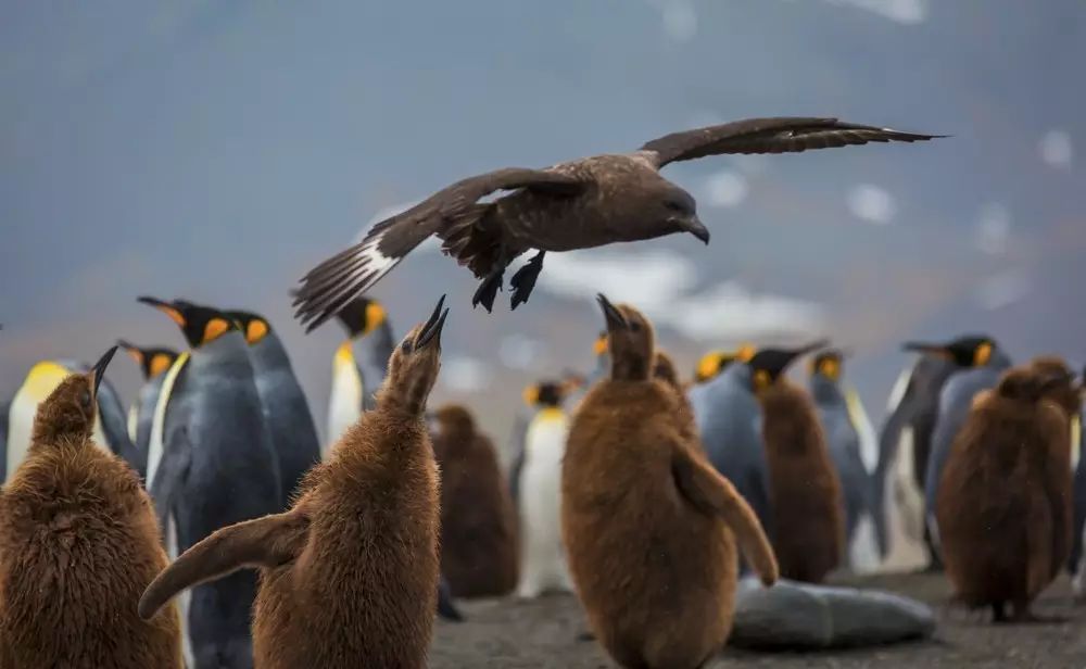 还有信天翁和贼鸥抓准时机偷企鹅蛋,都是抓拍的极好素材。
