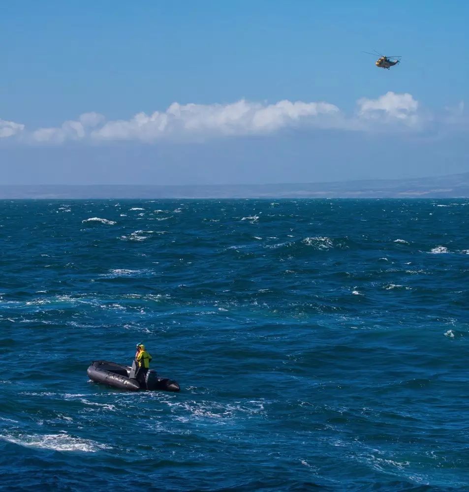 第一站,我们前往约200个小岛组成的福克兰群岛(英属),阿根廷称之为马尔维纳斯群岛,现居民不到3000人。1982年,英国和阿根廷为争夺此岛主权历经70多天的战争,最终英国获胜。经过一天的航行,行程过半时,我们南冠号忽然收到了北冕号邮轮发出的求救信息,这艘同是法国庞洛公司的邮轮比我们早一天出发,在马岛海域忽然因引擎室内起火而遇险,船体倾斜,船长决定弃船,并呼叫国际救援。