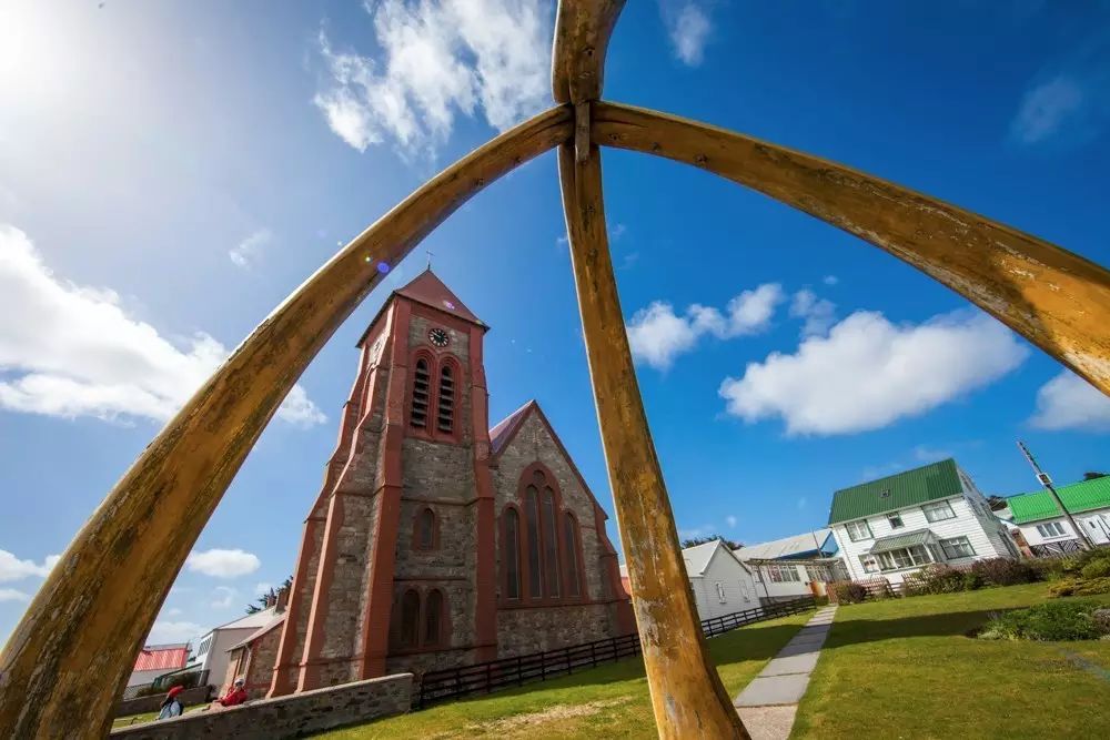 20号我们被允许下船,参观了这座风格别致的英属小镇——史丹利军港。童话般的小镇,到处是颜色艳丽的小屋、邮局、教堂。