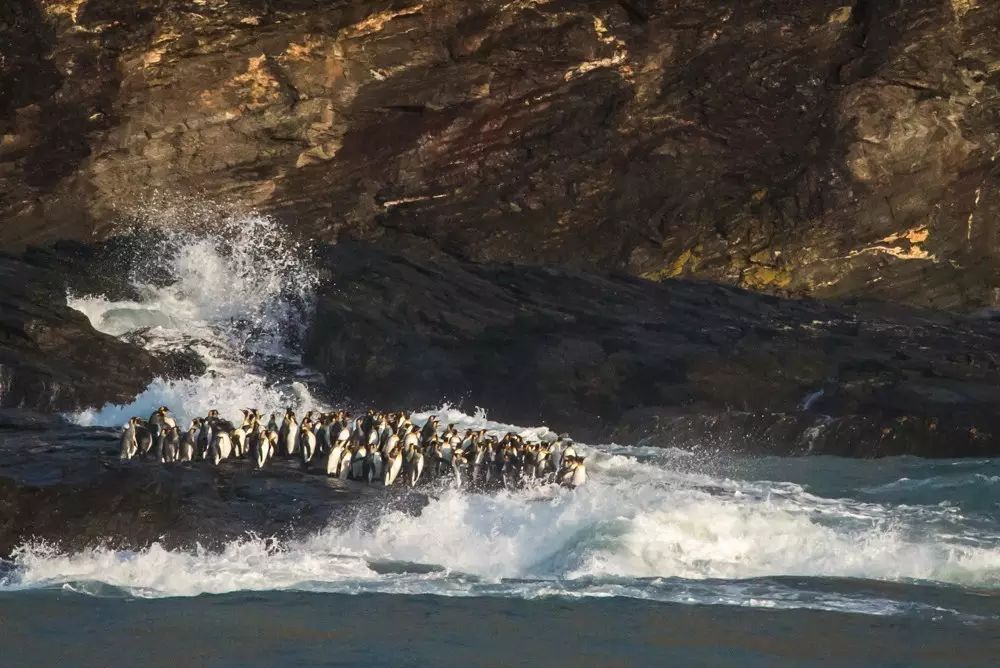 我们被允许走到最前面的山坡上拍摄,至上而下坡谷里到大海边20多万只企鹅栖息,太震撼了。我用16-36mm的超广角镜把这壮观景象也带了回来。由于登岛的时间和路线限制,三角架似乎不方便使用,只能提高ISO和速度,回船后还要做好干燥,维护好器材。