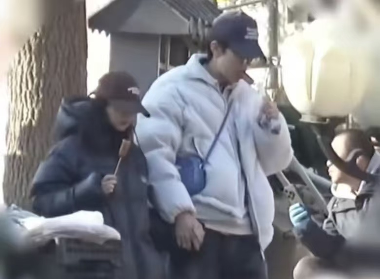 更让人觉得甜蜜的是,郑合惠子把自己吃剩的半根烤肠,随手递给了身边的任宥纶,而任宥纶也没有丝毫嫌弃,接过来就吃了。这种不刻意的小细节,恰恰是情侣之间才有的松弛感,比那些精心设计的互动更打动人。
