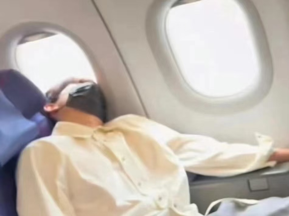 可谁也没想到,他这一睡,竟闹出了小插曲。因为实在太累,胡先煦陷入了近乎“昏迷式”的深度睡眠,头部不自觉地后仰,硬生生卡在了座椅和舷窗之间的缝隙里,脖子弯得角度特别大,双手垂着,身体一动不动,连呼吸起伏都快看不见了。