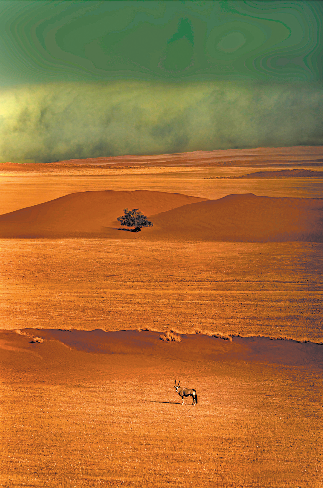 点评:竖幅构图展现出现场空间在纵向上的层次特征,加之光线营造出的明暗氛围,整个空间充满了自然的神秘色彩。动植物呈前后呼应之态,在简洁的环境中,生命的隐喻色彩浓郁。