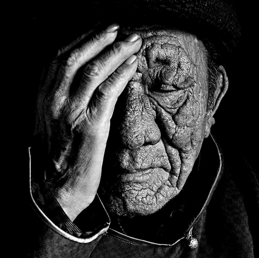 点评:作者采用特写画面和侧光照明刻画人物的面部表情和纹理细节,并通过控制背景和影调营造低调效果,在凸显人物情态特征之余,呼应其内在情感,增加观者对人物的想象。