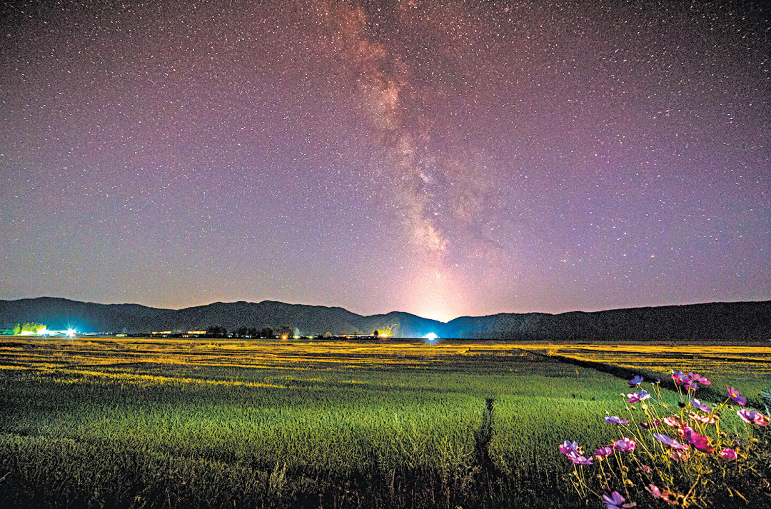 点评:这张照片的独特性在于对光线的巧妙运用以及曝光的合理控制。画面元素在不同光线的塑造下呈现出生动细节和层次过渡,明与暗、光与色的变化在暮色特有的影调和星空的衬托下充满了神秘气息,吸引人心。