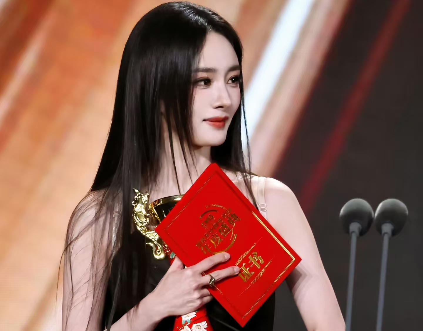 当晚最经典的名场面,莫过于两人同台领奖的瞬间。肖战主动侧身让C位,还礼貌鞠躬,方便杨幂上台,这份绅士风度被镜头全程记录,网友们纷纷点赞。两人并肩站在舞台上,手中握着各自的奖杯,目光坚定,既是各自领域的王者,也成为了内娱长红的标杆。