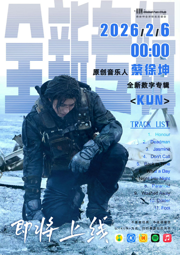 蔡徐坤同名专辑《KUN》上线成绩火爆:首日销量劲冲4千万